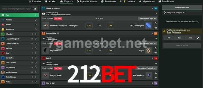 O 212bet oferece uma grande seleção de opções de apostas em e-sports com probabilidades competitivas